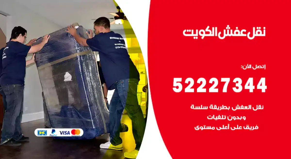 نقل اثاث الكويت يقدم خدمات وأعمال عديدة كنقل كافة أنواع الموبيليا والأثاث مع خدمة التغليف لحماية الموبيليا من أي خدش أو جرح يصيبها ولدينا خدمة تنظيف مفروشات ونؤمن سيارات كبيرة وصغيرة لسهولة عملية النقل كما أننا نقوم بنقل ألعاب لمدينة الملاهي عبر شاحنات نحن نؤمنها ونقل الأجهزة الطبية للمشافي والرياضية للصالات وننقل جميع معدات المكاتب والشركات وترتيبها في مكانها الخاص بها مع توفير رافعات لرفع القطع الكبيرة لمكانها المخصص نقل عفش .